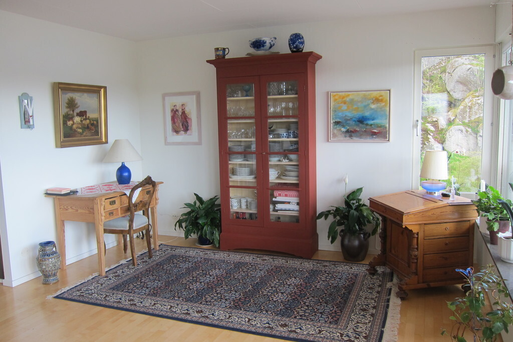 We live in a suburb, Mölndal, to Gothenburg on the Swedish west-coast. Gothenburg is the second largest city of Sweden and has about 600 000 inhabitants. You will find many things to do in this beautiful city: lots of museums, boat-trips along the coast and its famous and beautiful archipelago. You can also visit Liseberg (a well-known amusement park). In one hour by car you can reach different regions with the most shifting nature and tourist attractions such as genuine fishing villages in Bohuslän, the famous mountains Halle- and Hunneberg with its elks, at the lake Vänern. You can also take a trip to Småland and the famous glass factories and buy Swedish glass and crystal. Denmark is easily reached by ferry from Gothenburg. The house has an area of 122 square and has all modern facilities. It is situated on a slope with a fantastic view over a lake (where you can swim) and next to us You will find a picturesque castle, called Gunnebo. On this castle there is a good restaurant. In the surroundings you will find fine walking areas. In Sweden you have free access to the nature thanks to a law called ”allemansrätten”, which states that you have the right to walk everywhere and to pick flowers and berries, as soon as you keep away from private homes. For further information: https://www.vastsverige.com/en/