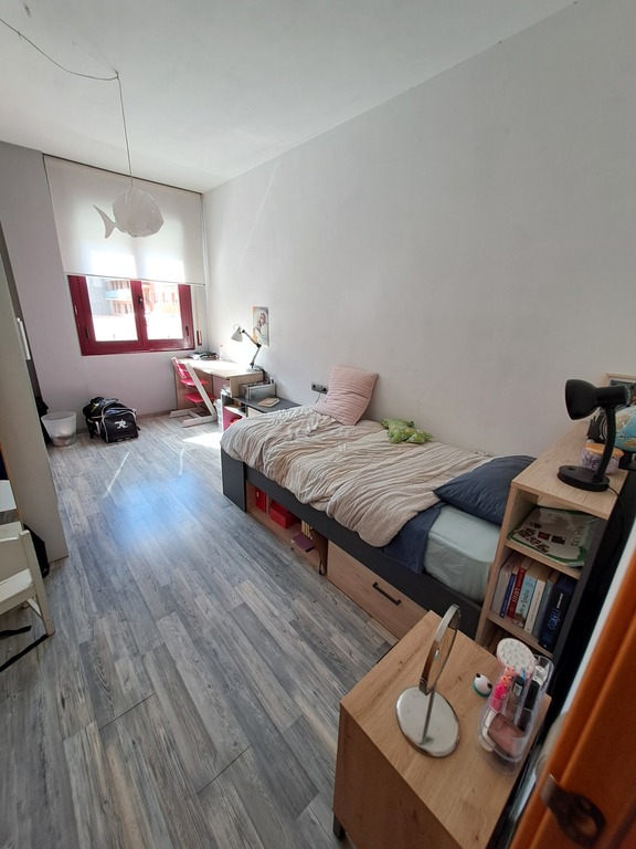 First floor flat, 3 bedrooms, and a little office, two bathrooms, kitchen, dinning room, balcon, and a terrace.