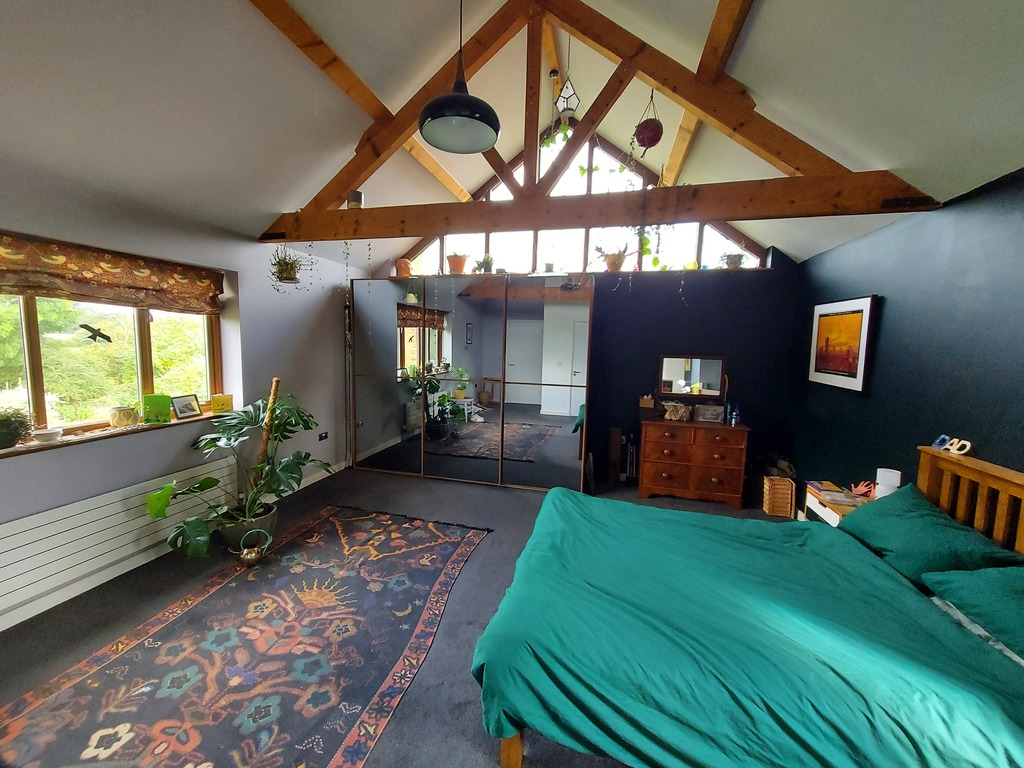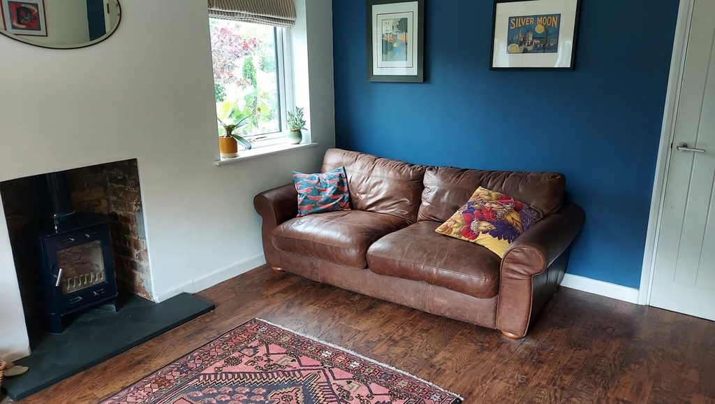 There is a large garden full of birds, with beautiful swimming pond. In the garden we have an occasional kingfisher, daily hedgehogs, owls nesting, two types of newts and dragonflies. The garden is almost an acre and is great for bbqs, swims, open fires in the fire pit, and trampolining. There are large areas for outdoor dining and play, and one living room has bifold doors opening up onto the yard and garden. Our house is bright and cheerful, with two living rooms (both with log burner and tv). There is also a BBQ for you to use. There is room to park several cars.
