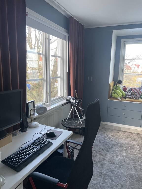 Une maison adorable, très bien entretenue, avec vue sur la mer de tous les côtés, très proche du centre ville. Terrasse et jardin sont des lieux très agréables pour se reposer. Karlskrona est un bon point de départ pour de multiples excursions, en vélo ou en bateau. L'interaction avec mes hôtes s'est très bien passée avant, pendant et après l'échange : ils ont tout fait pour rendre mon séjour le plus confortable possible. Ils ont pris soin de ma maison et de mon jardin qui étaient impeccables à mon retour.