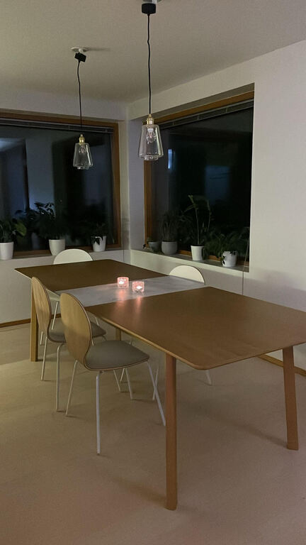 Our recently built house is 170 m2 and there is a garden with grill and large terrace. It has four bedrooms, large living room with open kitchen (fully equipped), two bathrooms (one within master bedroom with bath tube/jacuzzi, another one with large wood- burning sauna!). You are free to enjoy the Finnish Sauna in our home! Wifi connection available with interactive television with Netflix.