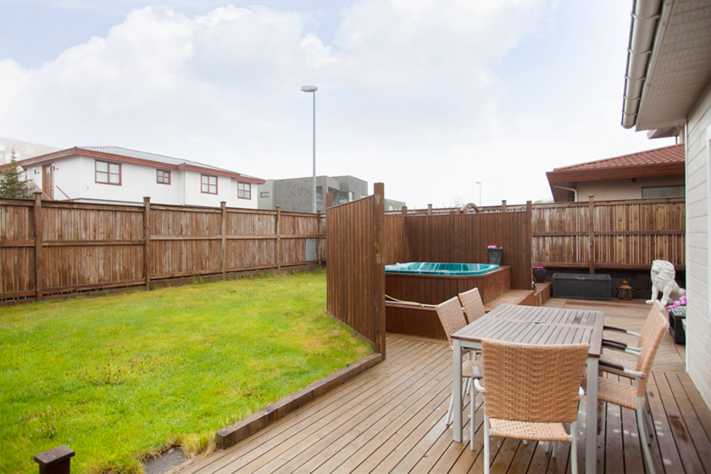 Spacious and family friendly house for 7-8 people in a beautiful neighbourhood with a big terrace and a hot tub in the garden. The house has 5 bedrooms, an office, a tv-room, a laundry room, 2 bathrooms, a big dining and living room and a kitchen. It is located near a golf course, between two lakes (Elliðaárvatn and Vífilstaðavatn) and close to Heiðmörk nature park. Grocery stores, swimming pool, sport center and a shopping mall is nearby.