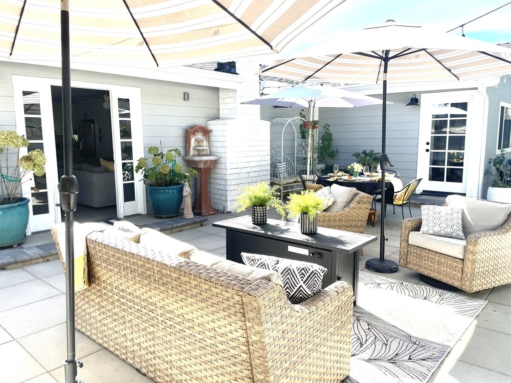 Our patio is equipped with hot tub, lots of umbrellas for those who prefer shade, a gas grill and an inviting dining area . We spend a lot of time enjoying the outdoors playing games , sharing meals, or sitting by the gas fireplace on cool evenings.