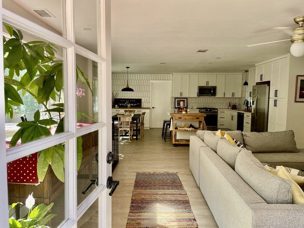 Enjoy our newly remodeled home in sunny Southern California. We have four bedrooms with sleeping capacity of six. The master bedroom has a king bed, guest room has a queen bed, and another room with trundle bed that sleeps two.One bedroom is now an office. There is also also a very comfortable sofa in the living room that would accommodate two . There are two bathrooms, one with a tub and shower. The other with a shower only. The kitchen has plenty of room for preparing meals and seating for all of you.