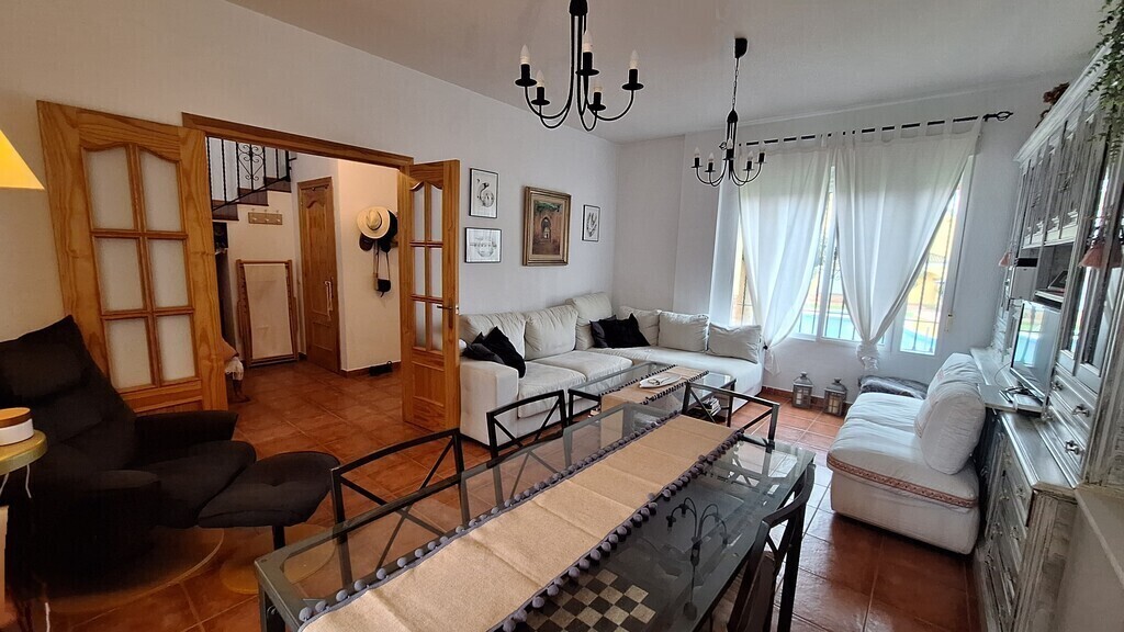 Fantastica casa unifamiliar a 5 minutos andando de la playa. La casa pertenece a una comunidad de 8 viviendas que comparten piscina, zona de juegos y aparcamiento. Es de 2 plantas con 3 habitaciones, dos baños, cocina, salon y hall, Terraza con jardin privado y porche delantero dando a la piscina.