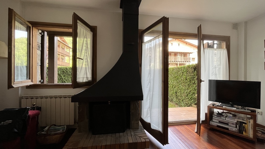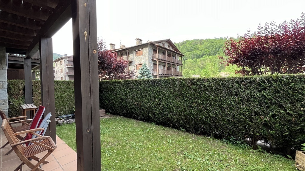 Se trata de un apartamento (planta baja) de 80 m2 con un pequeño jardín, en una bonita urbanización típica del Pirineo, de casas de piedra y madera de aspecto rústico. En un entorno de gran belleza, por sus hermosos pueblos, así como por el atractivo de su naturaleza.
