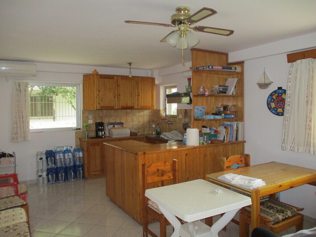 It is a 58 m2 countryside house, located on the ground floor, with a large yard around it, close to the sea and close to beautiful locations and attractions. It belongs to a two-level complex of 9 apartments. It is ideal for a quiet family vacation near the sea and as a base for excursions to beautiful locations. The sea is shallow and warm and suitable for children. The house has air conditioning and ceiling fans. This is a particularly quiet neighborhood, without shops and hotels.