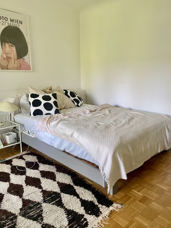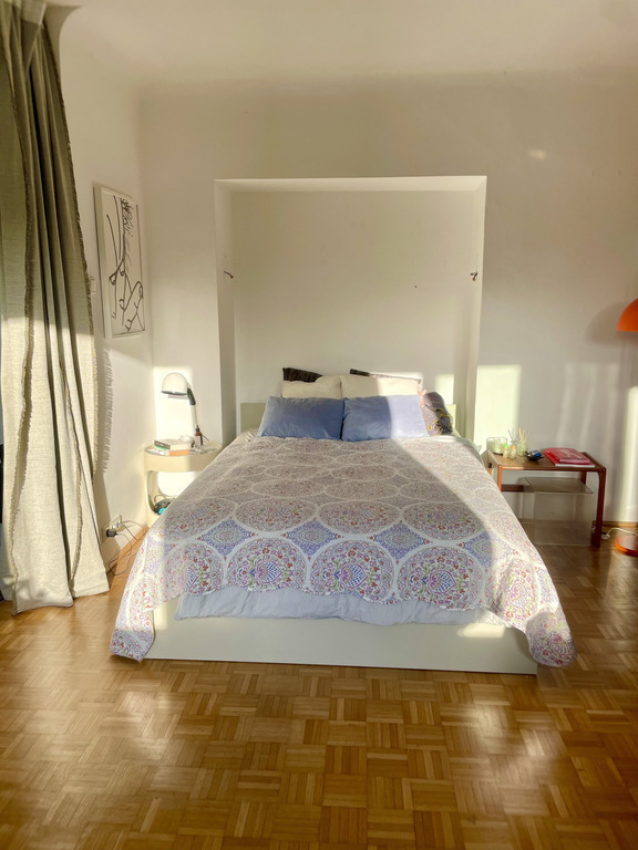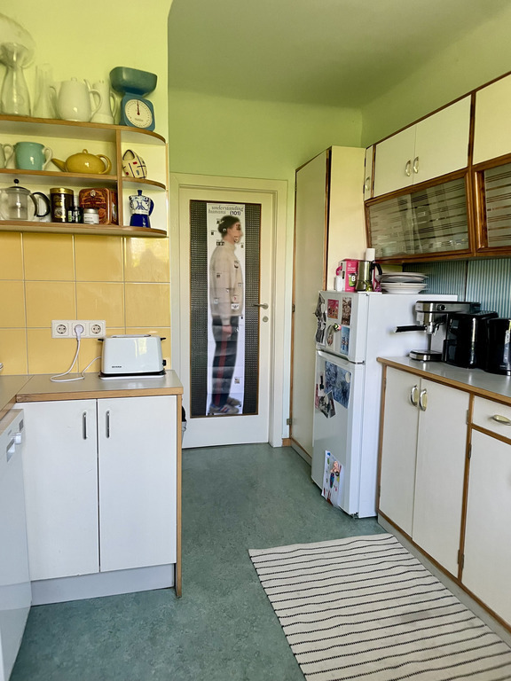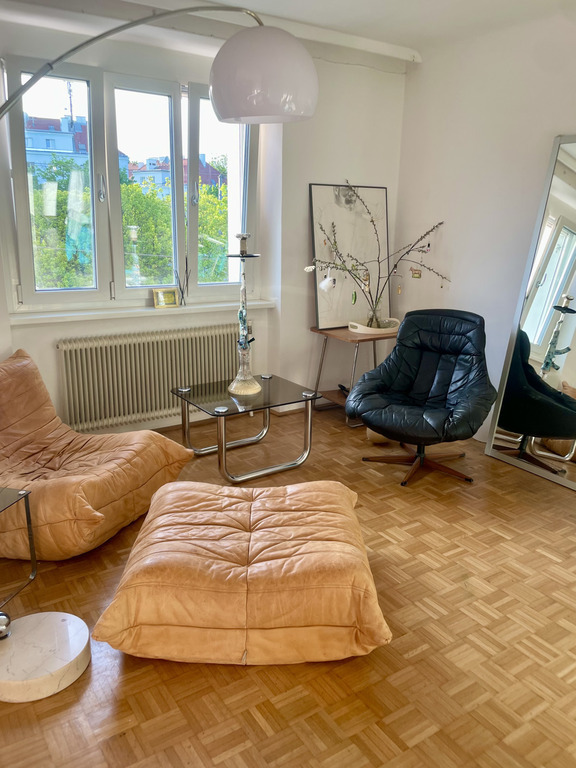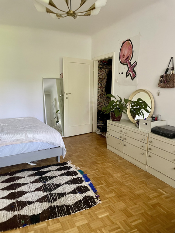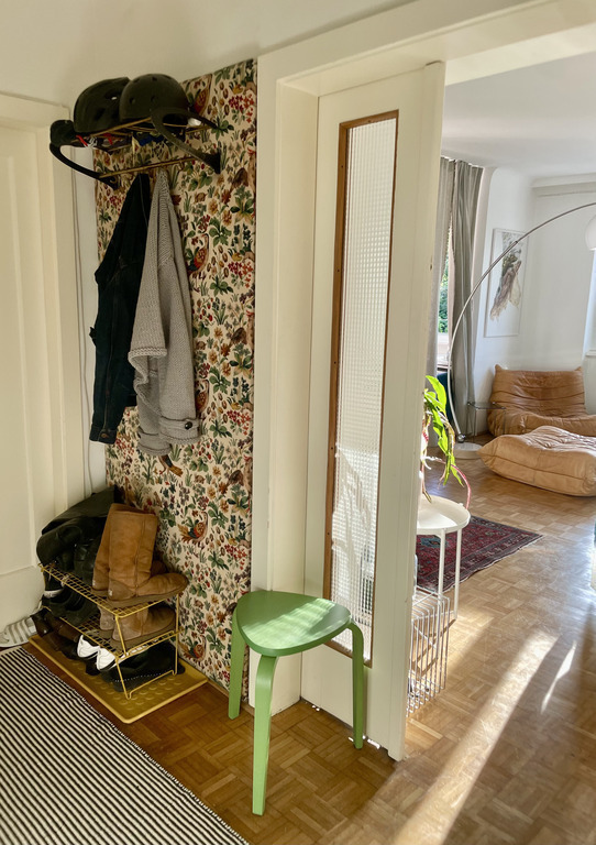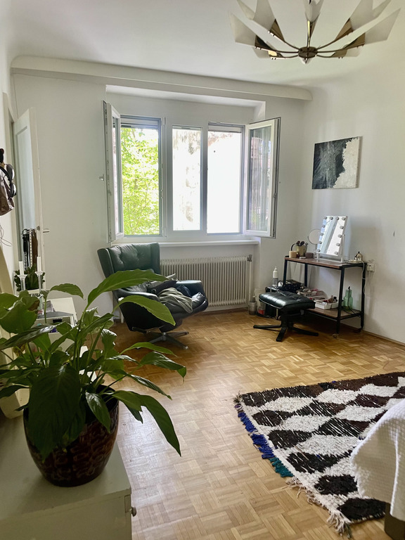 Meine beste Freundin und ich teilen uns eine charmante Wohnung in einem stilvollen Wohnhaus aus den 1960er Jahren. Auf 85 Quadratmetern bietet unser Zuhause genügend Raum für bis zu vier Personen. Die Wohnung verfügt über zwei Schlafzimmer - eines davon ist durch einen Vorhang elegant vom Wohnzimmer getrennt - sowie einem Badezimmer, ein separates WC und eine voll ausgestattete Küche.