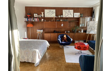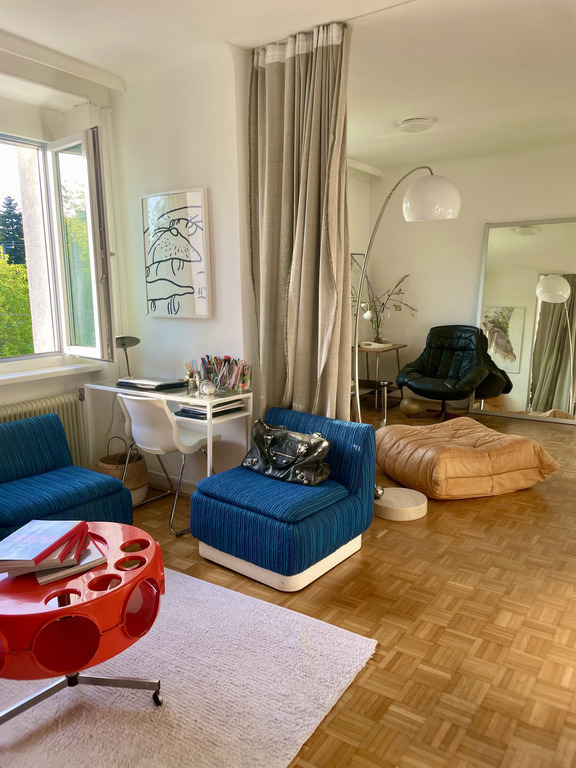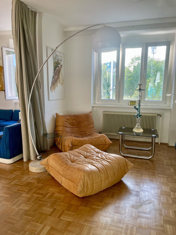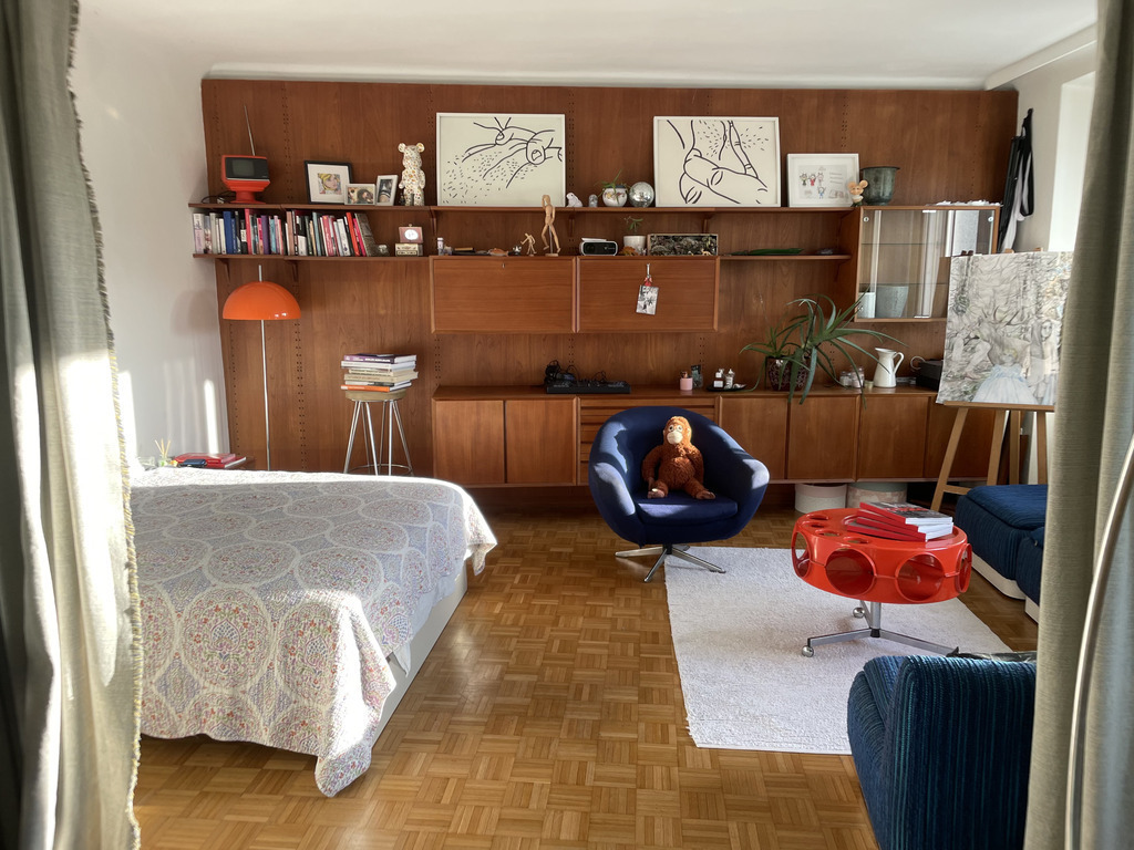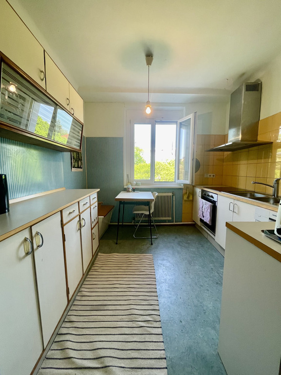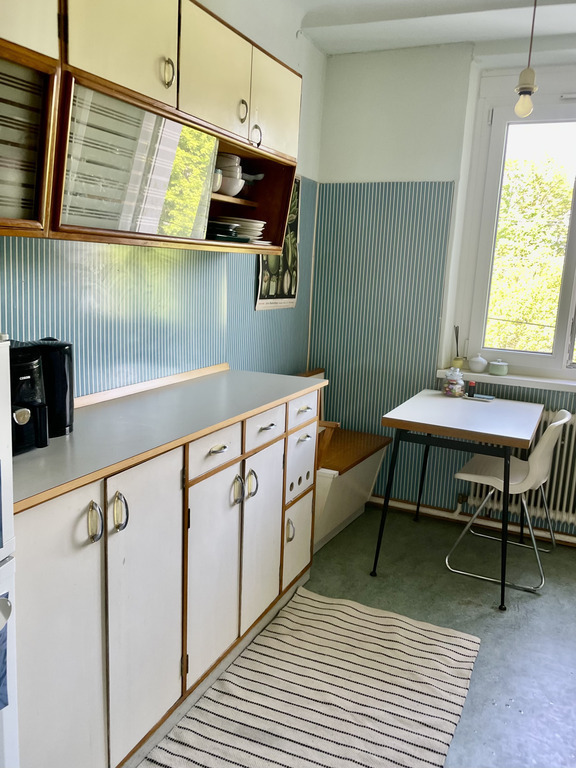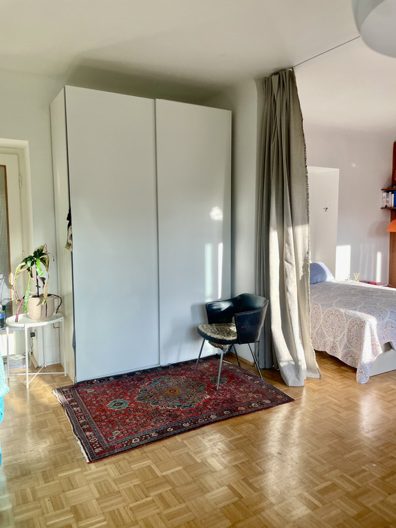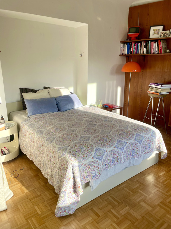Meine beste Freundin und ich teilen uns eine charmante Wohnung in einem stilvollen Wohnhaus aus den 1960er Jahren. Auf 85 Quadratmetern bietet unser Zuhause genügend Raum für bis zu vier Personen. Die Wohnung verfügt über zwei Schlafzimmer - eines davon ist durch einen Vorhang elegant vom Wohnzimmer getrennt - sowie einem Badezimmer, ein separates WC und eine voll ausgestattete Küche.