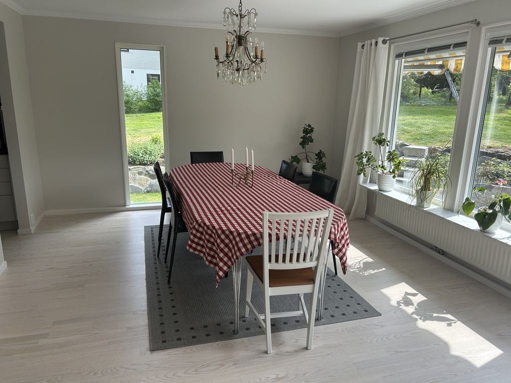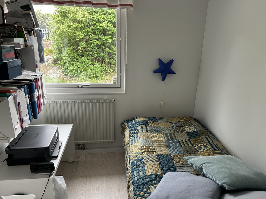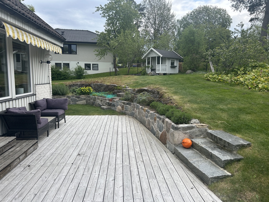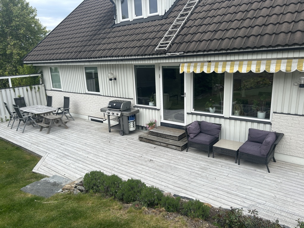 We live in a house in a quite neighbourhood near the sea. Our garden is great for playing for kids, or just relaxing after a day of activity. The terrace is nice for sunbathing and barbecue on sunny days. Our kids enjoy our trampoline. If you want to swim, there are nice places nearby (5-15 min by car or bicycle), both by the sea and by a lake, even a public outdoor swimming pool facility.