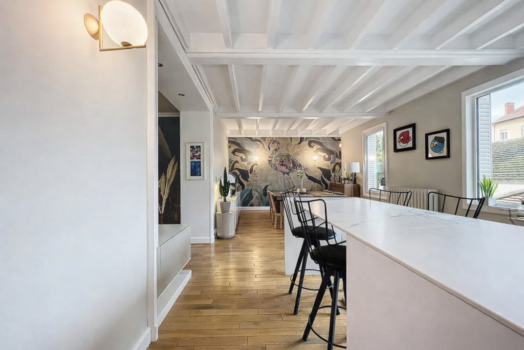 Our house is a typical late-19th-century Caladoise townhouse, approximately 300 m², fully renovated with care. It has retained its soul and architectural character while offering a high level of acoustic and thermal comfort, rare for a city-centre property.