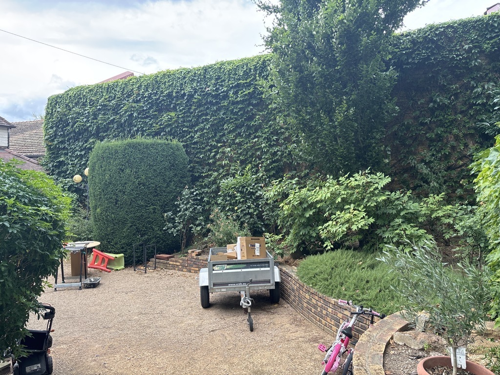 a quiet, private inner courtyard with a small garden and a trampoline for children.