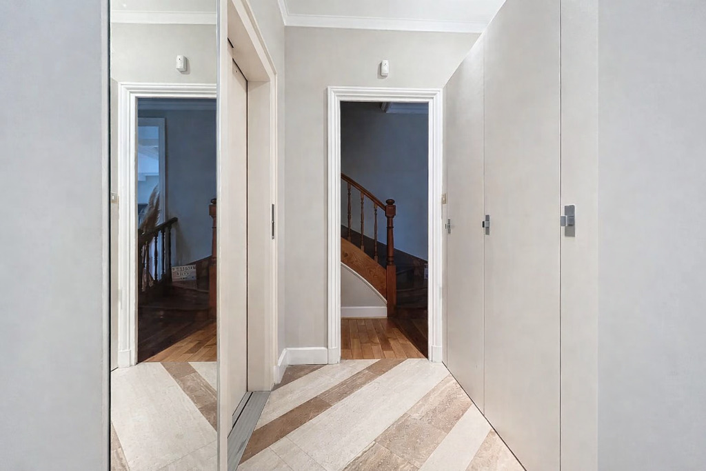 The home features a private elevator, rare in a city center, ensuring easy access to all floors. Except the top floor.