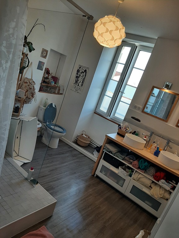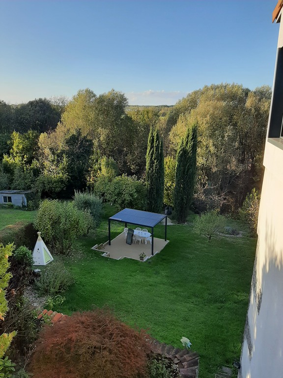We live in a beautiful renovated farmhouse: separate kitchen, large 75 m² living room with views over the Charente Valley, and a garden with a pergola-covered terrace and access to the cycle path.