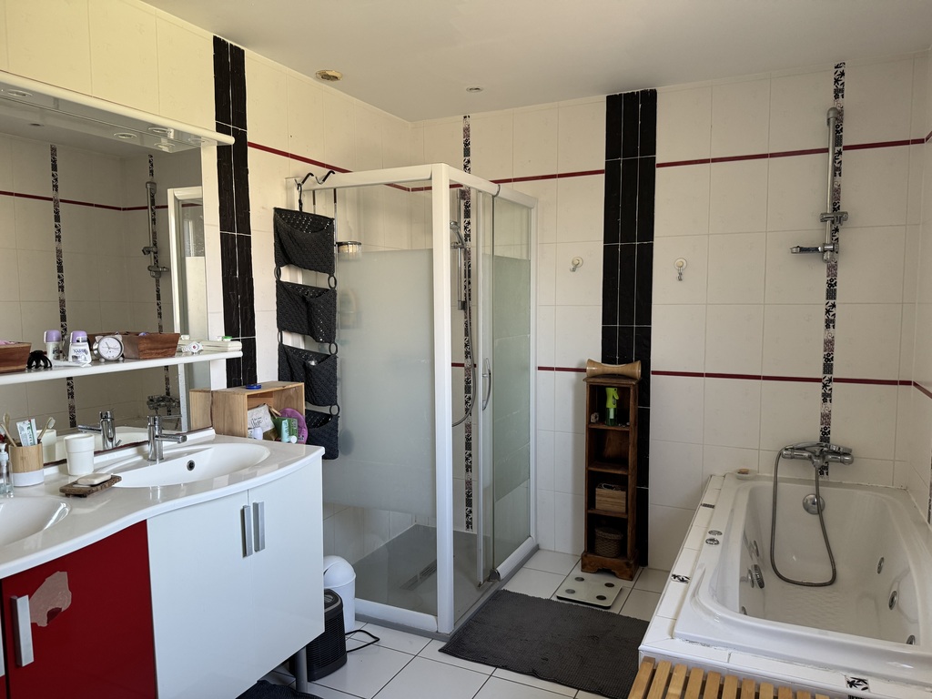 A l'étage, trois chambres et une grande salle de bain (baignoire, douche, double vasque).