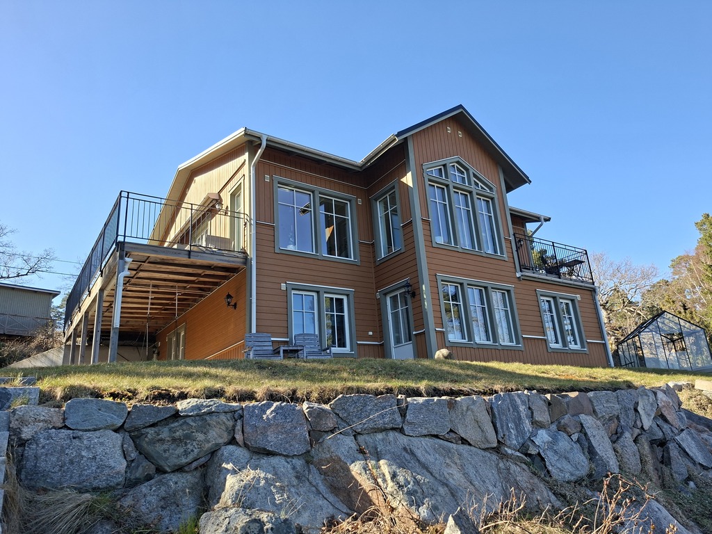 Family home built in 2014 on a seaside property. A smaller house that can accommodate up to 4 adults is available on request. Accessible by bus network in Stockholm. It's a 20 min walk to the bus.