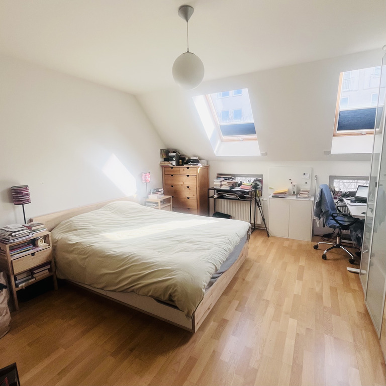 Unsere Wohnung (3 Schlafzimmer + Wohnzimmer, 127 m2) befindet sich auf dem 3. und 4. Stock von einem vierstöckigen alten Haus. Unten ist ein großes Wohn- und Esszimmer mit offener Küche, einer Terasse (7m2), dem Elternschlafzimmer (Doppelbett 160x200 cm) und einem Badezimmer mit Dusche und Toilette. Im oberen Stock sind die zwei Kinderzimmer und ein größeres Badezimmer mit Dusche, Badewanne und Toilette. In einem Kinderzimmer ist ein breiteres Bett (140x200 cm) und ein normales Einzelbett (90x200 cm). Im Wohnzimmer gibt es eine ausziehbare Couch, die auf 140x200 cm ausgezogen werden kann.