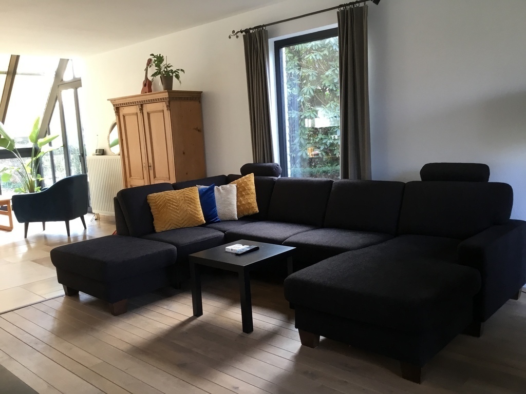 Our house is located in a residential and very quiet district of Hoogstraten. At 50 meters there is a small children-park with swings and other games. We have a garden in front of the house and a garden behind, closed and private. There are several trees that offer shadow in summer and a small pool with terrace and relax-chairs to sunbath if you like and a large teak-wooden table to eat outside when weather is fine. Our back-garden is situated to the South, so it is very nice and sunny. Our house has been built in 1994 and offers all modern comfort. There’s central -heating in all the rooms and the house is well equipped with an anti-theft alarm-system in every place.