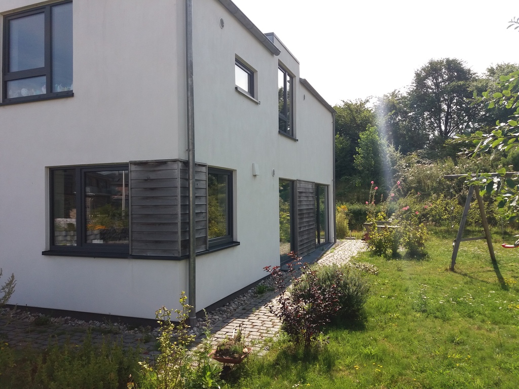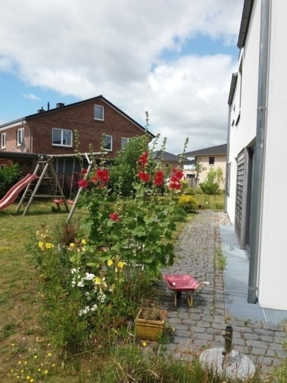 Our house was built in 2014 and is 170qm big, has got a big kitchen and a big living room and three bedrooms -two with normal sized single beds and one with a double bed. It has got two bathrooms with showers (one with a bath, too) plus another toilet downstairs. There is also a big garden with pateo, a big trampoline and a table tennis table. Oh, and with our house there are four cats and three bunnies that would have to be looked after :-) And we have got a little pond with some goldfish.
