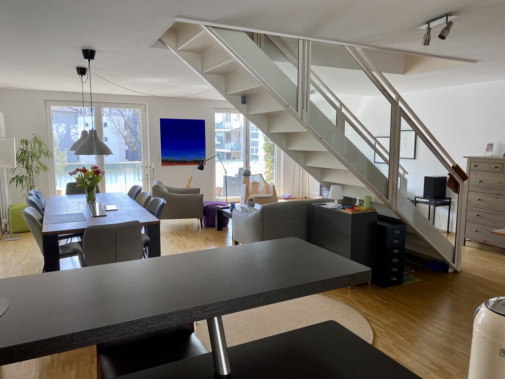 Our appartment measures 130 square meters over two floors. The modern house was built in 2004, has a lift and is situated next to the main station. It takes 10 minutes by tram to get into the city center. You find playgrounds and an open air pool is reachable by public transport within 5 minutes.
